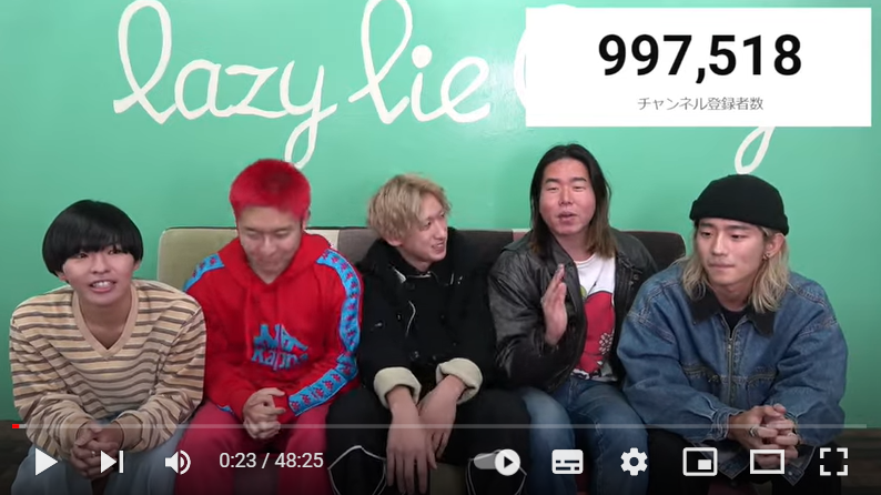チャンネル登録者数:100万人